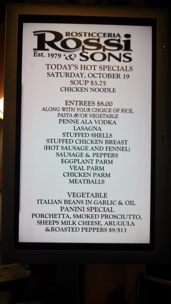 Rossi Rosticceria Deli, a renowned Italian deli located in Poughkeepsie, NY, offers a wide range of delectable options, including sandwiches, hot dishes, daily specials, specialty meats and cheeses, sauces, and pasta. Customers rave about the generous portion sizes and authentic Italian flavors. The standout element of Rossi's menu is their bread, which elevates every sandwich to a whole new level. The establishment has a cozy, old-school Italian ambiance, perfect for enjoying a meal with family or friends. Whether you opt for a classic roast beef sandwich or a gourmet creation like the famous Number Four, Rossi Rosticceria Deli guarantees a satisfying dining experience. With a diverse menu, exceptional quality, and impeccable service, this deli is well-loved by locals and visitors alike. Make sure to check out their catering options for your next event and experience the true taste of Italy at Rossi Rosticceria Deli.